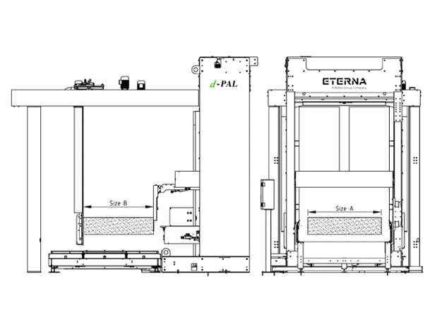 整體紙垛規(guī)格 最大1600(A)×1600(B)mm 最小500(A)×600(B)mm